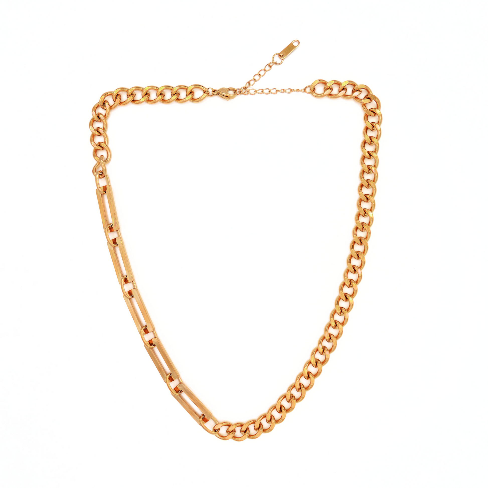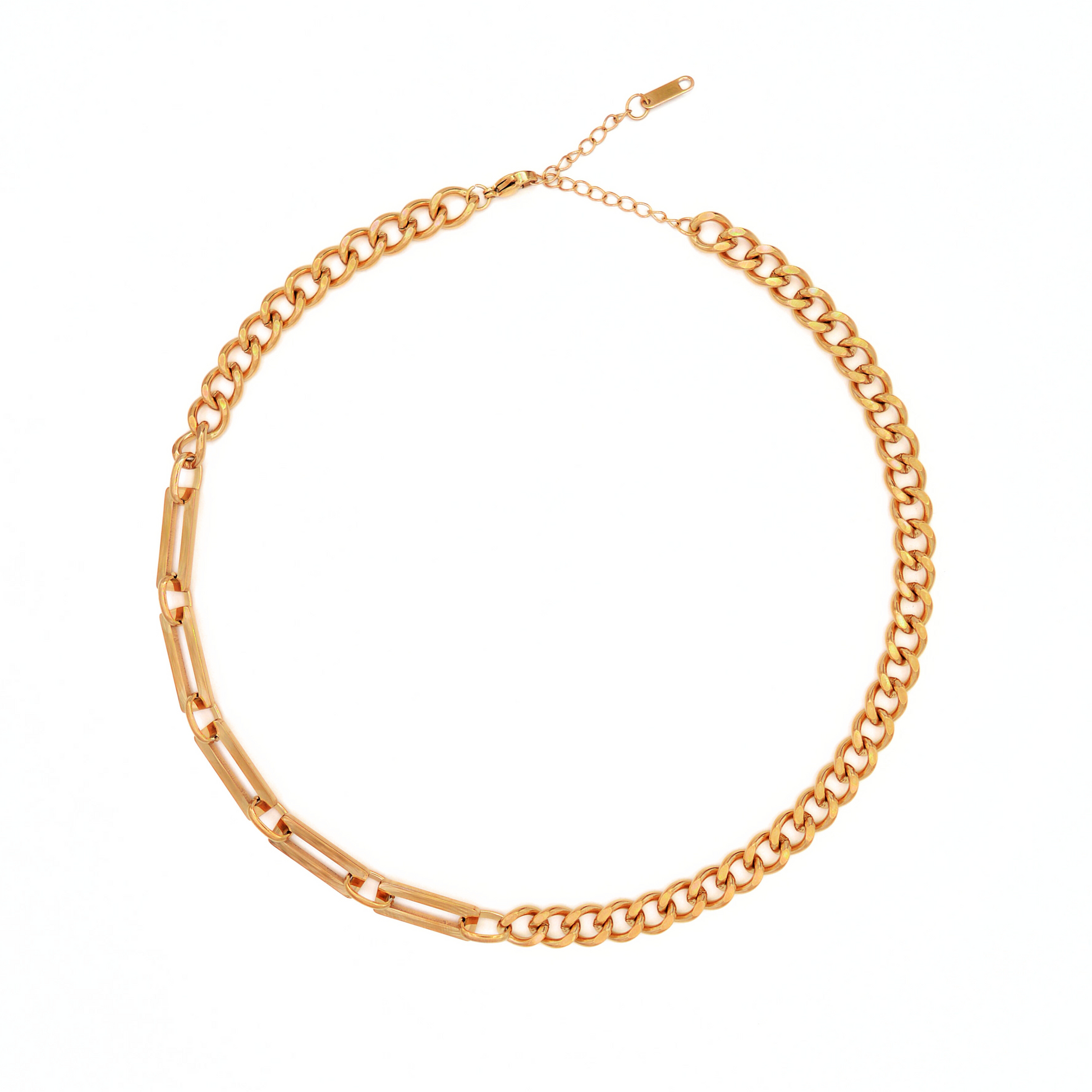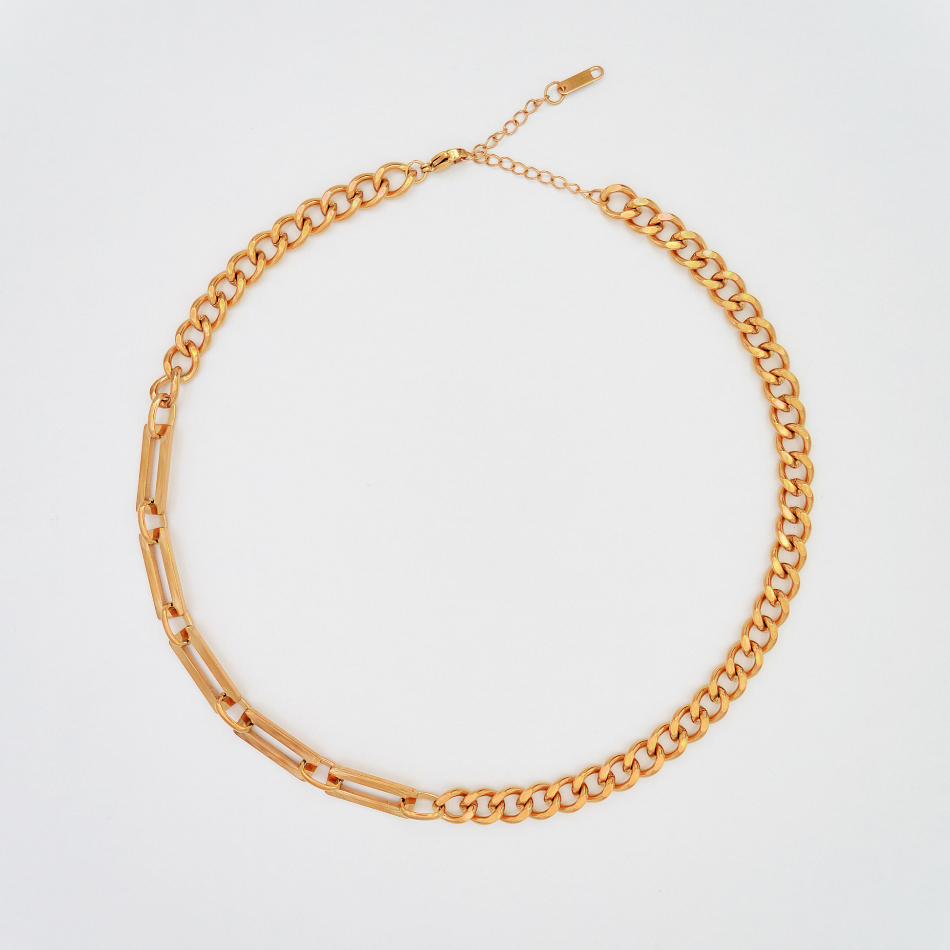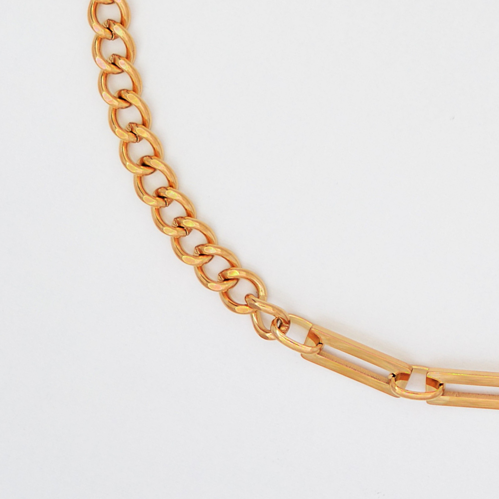 A Keeper nyaklánc prémium 316L rozsdamentes acélból készült, és ragyogó 18 karátos arannyal bevont, luxus csillogást kölcsönözve, amely nem fakul ki, és nem irritálja az érzékeny bőrt.