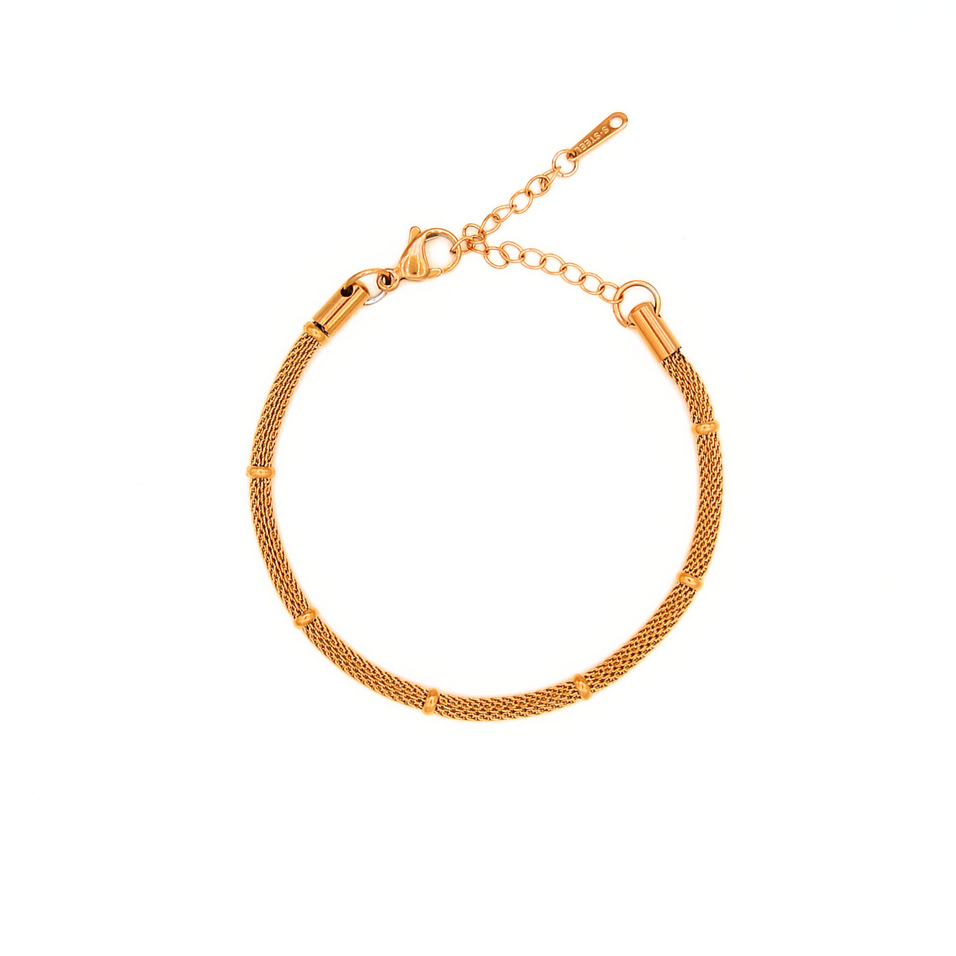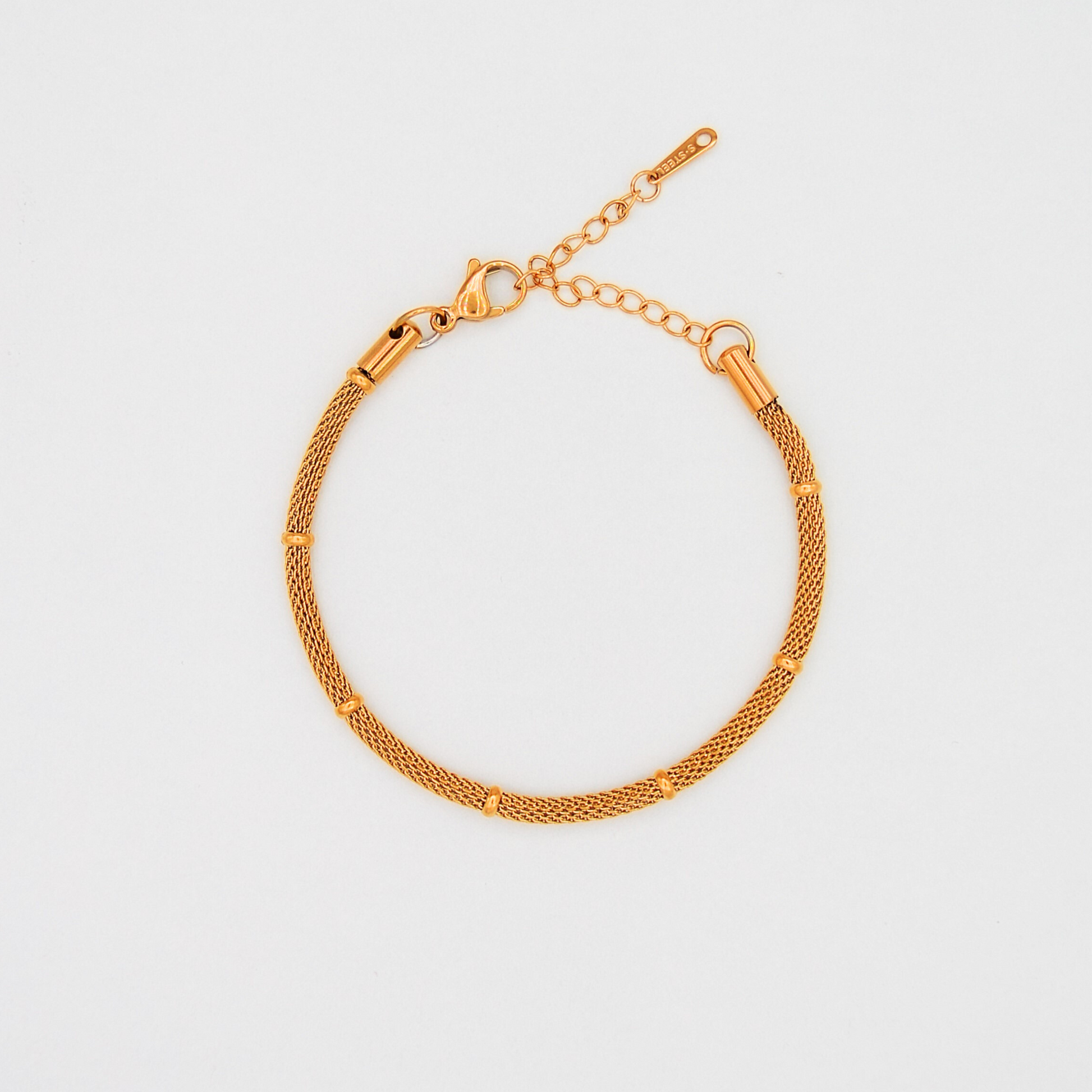 A Mirthil karkötő prémium minőségű 316L rozsdamentes acélból készült, és ragyogó 18 karátos arannyal van bevonva. Luxus csillogást kölcsönöz, amely nem fakul ki és nem irritálja az érzékeny bőrt. Minimalista stílus a mindennapokra.