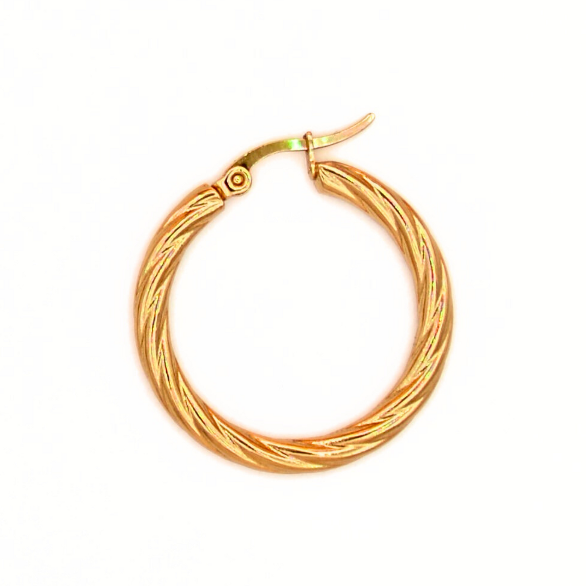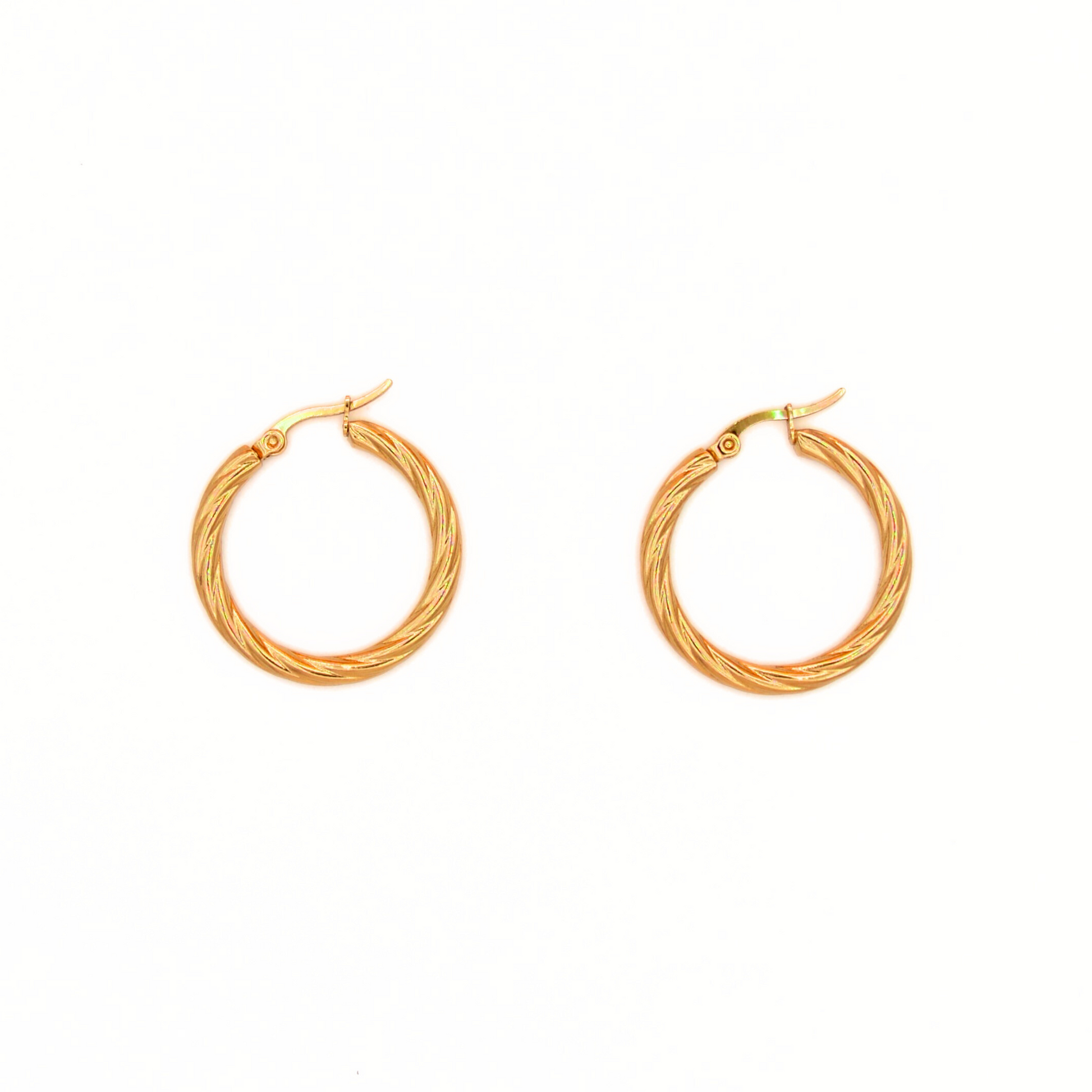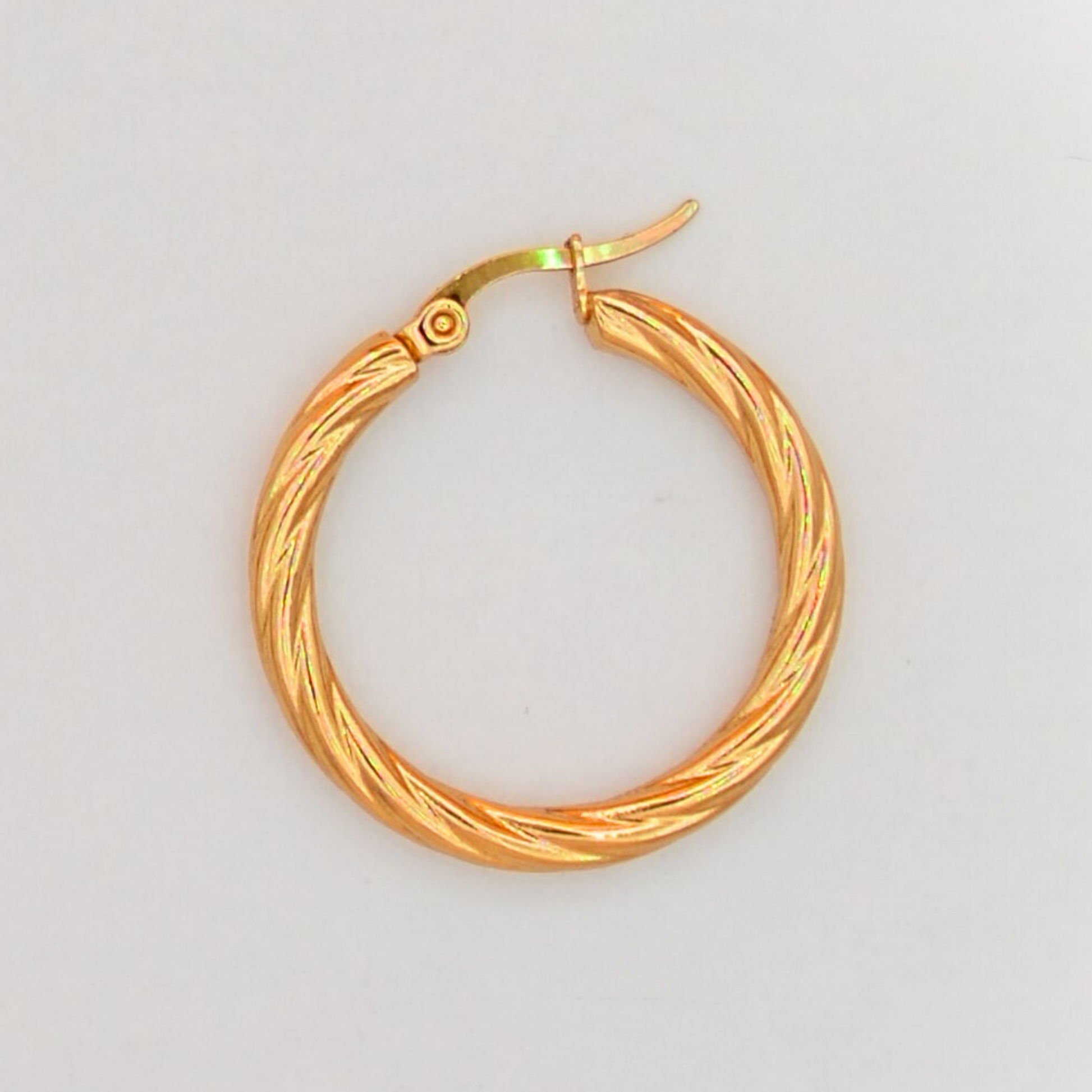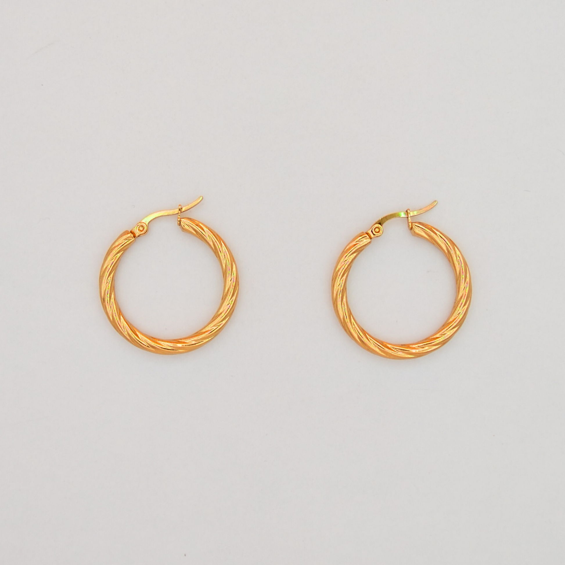 A Torqueo fülbevalók erőteljesen egyszerűek, gazdagon ragyogóak. Hipoallergén anyagból készültek. 316L rozsdamentes acél fényes 18 karátos aranyozással ezek a fülbevalók ellenállnak az elemeknek: vízállóak, nem kopnak, és tökéletesen biztonságosak az érzékeny fülek számára is.