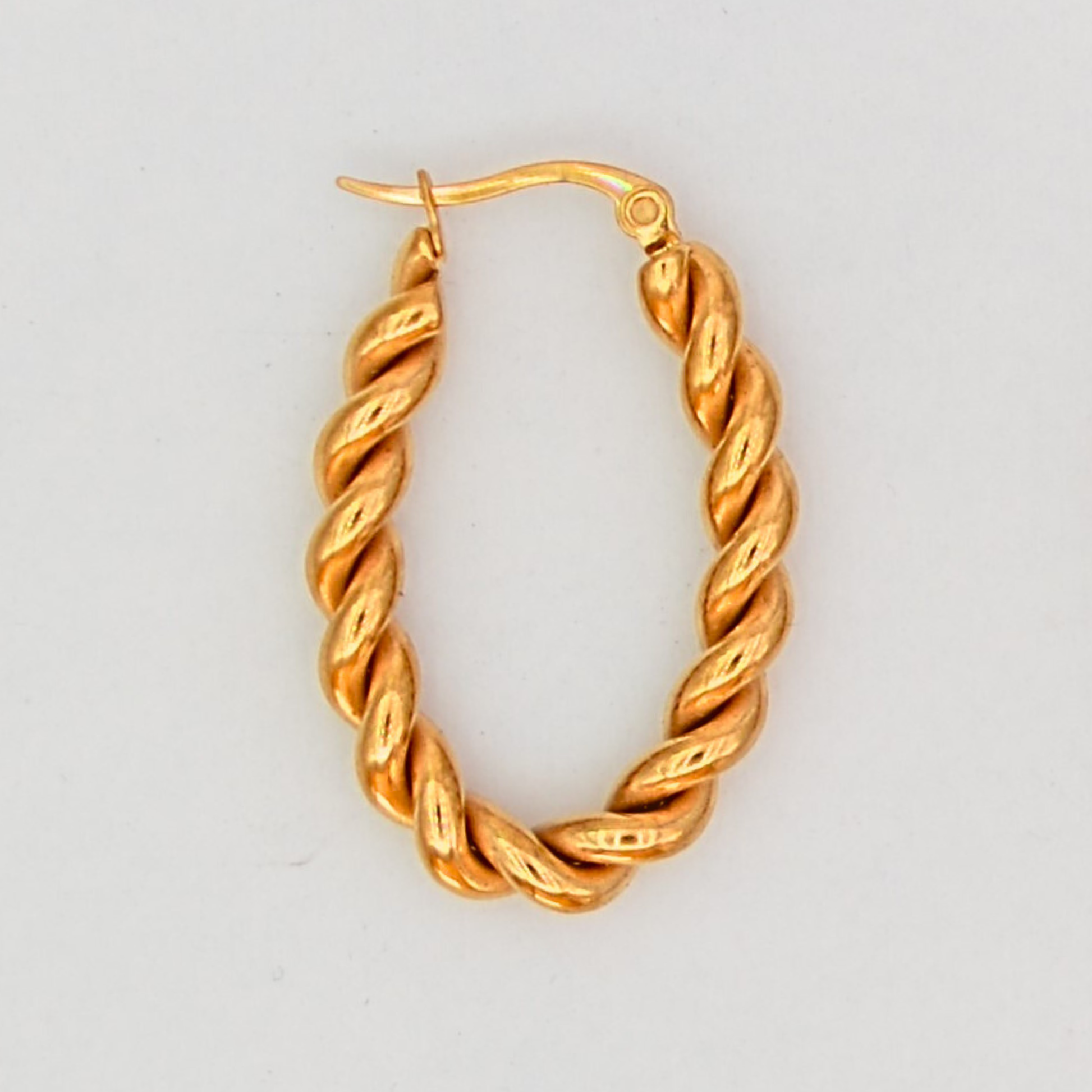 A Twistie fülbevaló kecsesen csavart dizájnnal rendelkezik, amely a modern stílust ötvözi az időtlen kifinomultsággal. Hipoallergén rozsdamentes acélból készült, gazdag 18 karátos arannyal bevonva, ez a darab ellenáll az elszíneződésnek és ragyogó marad – még mindennapi viselés során is.